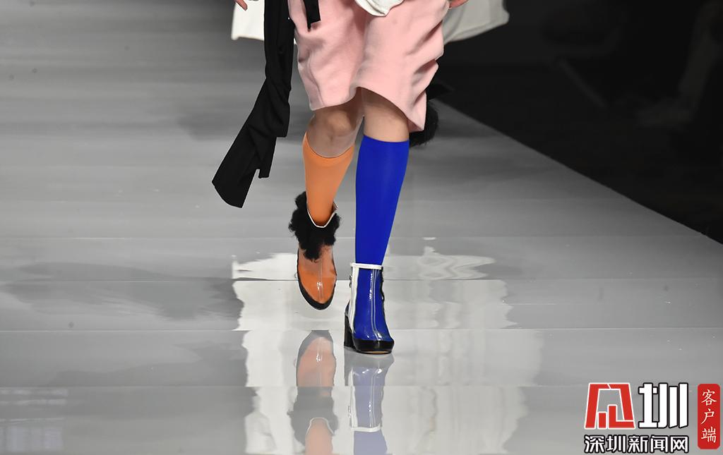 模特的鞋子顏色搭配吸引眼球