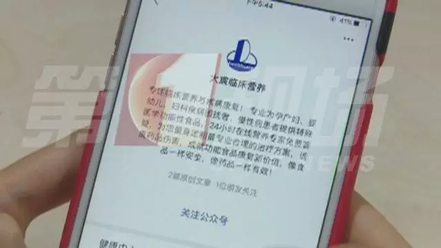 記者注意到,“大宸臨床營養(yǎng)”并非南山人民醫(yī)院的公眾號,其賬號主體是“深圳市大宸生物技術有限公司”,天眼查資料顯示,這是一家私營企業(yè),業(yè)務包括保健食品銷售。