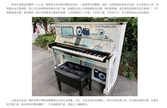 不知你們發(fā)現(xiàn)沒(méi)有,在華強(qiáng)北地鐵口以及周邊的空曠遮蔭處,擺放了8架鋼琴,市民可以免費(fèi)使用。