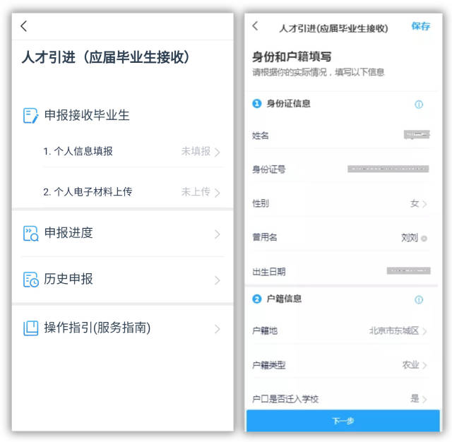 畢業(yè)生根據(jù)個(gè)人實(shí)際情況,按照系統(tǒng)提示填寫身份和戶籍信息、教育和綜合信息兩大類信息。