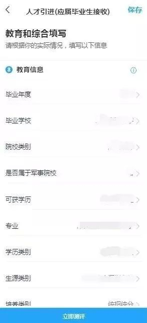填寫完成后點(diǎn)擊下方測評按鈕,系統(tǒng)將對填寫的信息進(jìn)行測評。