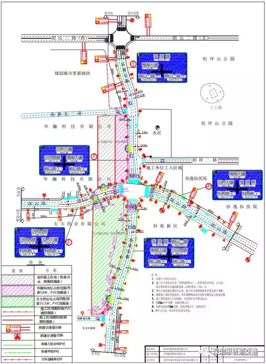 松坪站是13號線與24號線(規(guī)劃中)的換乘站。車站南接科興站,北接西麗火車站,總長308.1米。本次松坪站第一階段交通疏解主要施工內(nèi)容包括:綠化遷移、管線遷改、新建臨時(shí)道路、交通設(shè)施的拆除及新建。