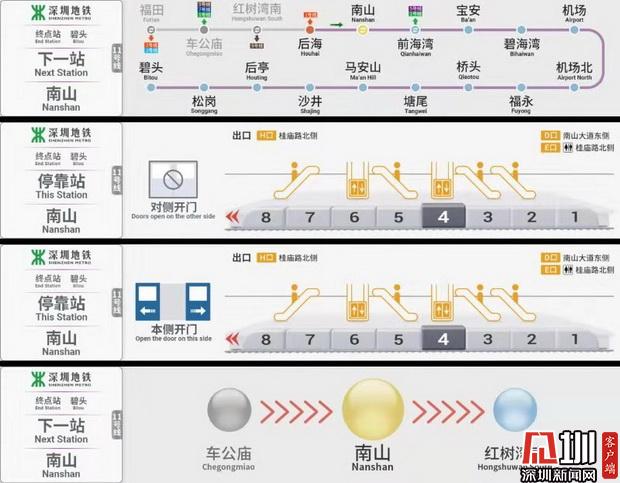 “很多乘客到站下車后,都要跟著車站標(biāo)識去尋找電梯、換乘通道以及出入口的位置,尤其是在高峰時段,會非常的擁擠?!鄙钲诘罔F運(yùn)營集團(tuán)相關(guān)負(fù)責(zé)人說,新界面所顯示的信息內(nèi)容是實(shí)時更新的,其中下一站點(diǎn)的站內(nèi)信息界面,可方便車廂乘客提前了解當(dāng)前車廂位置以及電梯口、洗手間和出入口等相關(guān)設(shè)施位置,待列車到站后便可快速找到想前往的地點(diǎn),大幅度節(jié)省了乘客出行的時間。