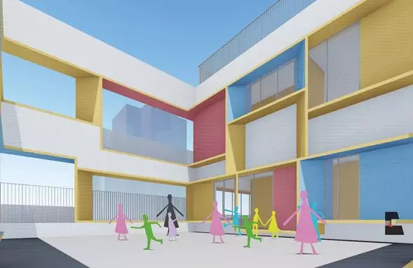 中規(guī)中矩的老舊建筑加上千篇一律的授課教室,生硬的建筑外形激增孩子們的陌生感,使孩童失去進一步挖掘與探索的好奇心。
