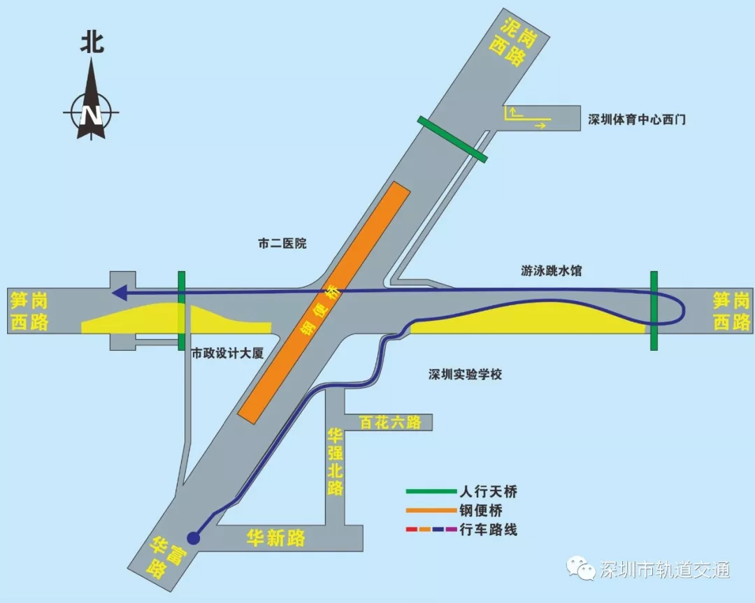 南轉(zhuǎn)西(華富路左轉(zhuǎn)筍崗西路):華富路通過右轉(zhuǎn)輔道進(jìn)入筍崗西路,隨后在掉頭口處掉頭,直行通過原平交路口,完成左轉(zhuǎn)。(詳見圖7)