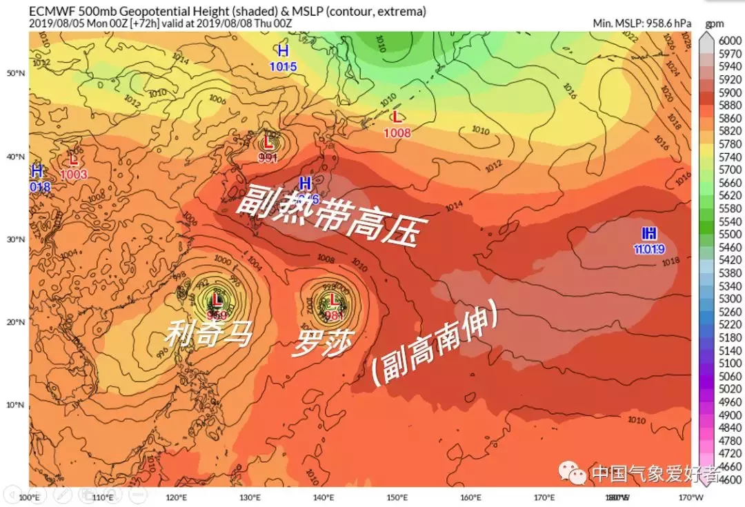 羅莎臺(tái)風(fēng)將會(huì)是一個(gè)又大又強(qiáng)的臺(tái)風(fēng)。由于個(gè)頭太大,副高壓不住,所以它不會(huì)來我國(guó),最大可能是緩慢北上登陸日本。不過,羅莎將會(huì)阻止副高在利奇馬南側(cè)西伸,并且對(duì)利奇馬有互斥作用,是利奇馬臺(tái)風(fēng)的“導(dǎo)演”之一??傮w看來,羅莎將會(huì)對(duì)利奇馬施加向西的作用力,促使利奇馬更靠近我國(guó)。