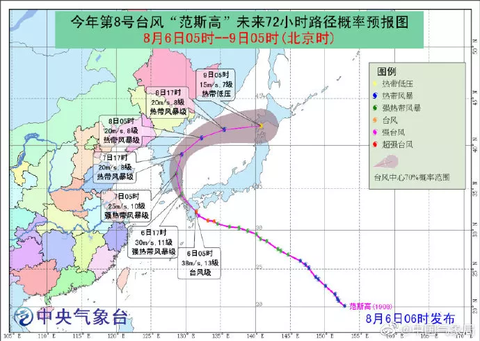 預(yù)計(jì),“范斯高”將以每小時(shí)25-30公里的速度繼續(xù)向西北方向移動(dòng),將于今天晚上再次登陸韓國(guó)南部,爾后逐漸轉(zhuǎn)向東北方向移動(dòng),強(qiáng)度逐漸減弱。