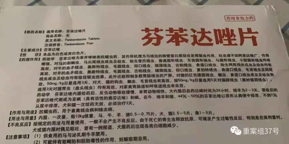 ▲國產(chǎn)芬苯達(dá)唑片說明書