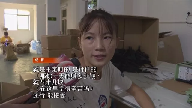 這個(gè)正在做包裝的少女叫做楊哲,她只有15歲來(lái)自湖南,剛剛初中畢業(yè),在這個(gè)小作坊里她每天都干著不同的小活,以按件計(jì)費(fèi)的方式,賺取一點(diǎn)費(fèi)用,以貼補(bǔ)家用。