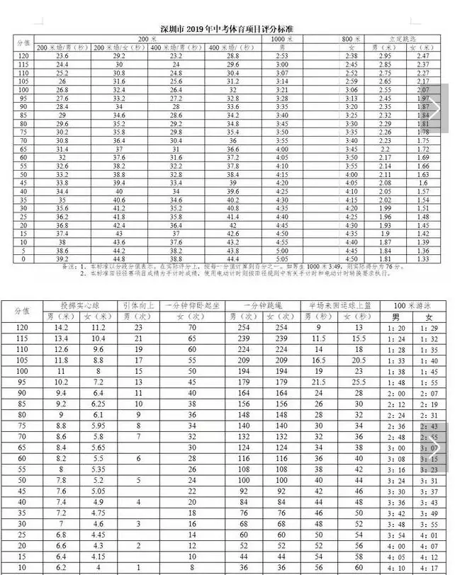 調(diào)整后,深圳體育中考分數(shù)由統(tǒng)一現(xiàn)場考試成績分值32分、過程性考核(平時成績)分值12分和《國家學生體質(zhì)健康標準》測試分值6分組成,滿分為50分。其中,體育考試考試項目仍為“1+1”,即考生參加1項必考科目和1項選考項目。必考科目由現(xiàn)在的200米跑和中長跑(800米[女]和1000米[男])任選其一調(diào)整為中長跑(800米[女]和1000米[男])或100米游泳任選其一。