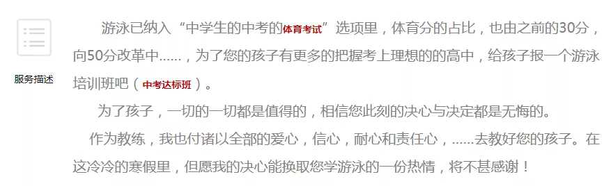 小編了解到,目前的游泳報考生大多是從小在校外自費訓練,多年來需要花費高額學費及投入大量精力。盡管新的中考體育考試辦法尚未確定,但不少商業(yè)培訓機構(gòu)已嗅到商機,迅速做出了反應。深圳幾家大型培訓機構(gòu)網(wǎng)站上,針對不同年級適用的中考項目一一列出,最新的《征求意見稿》也被貼在了2022年中考部分,并強調(diào)對擬新增的項目同樣提供相關服務。小編網(wǎng)上隨手一搜,到處都是游泳培訓班的廣告: