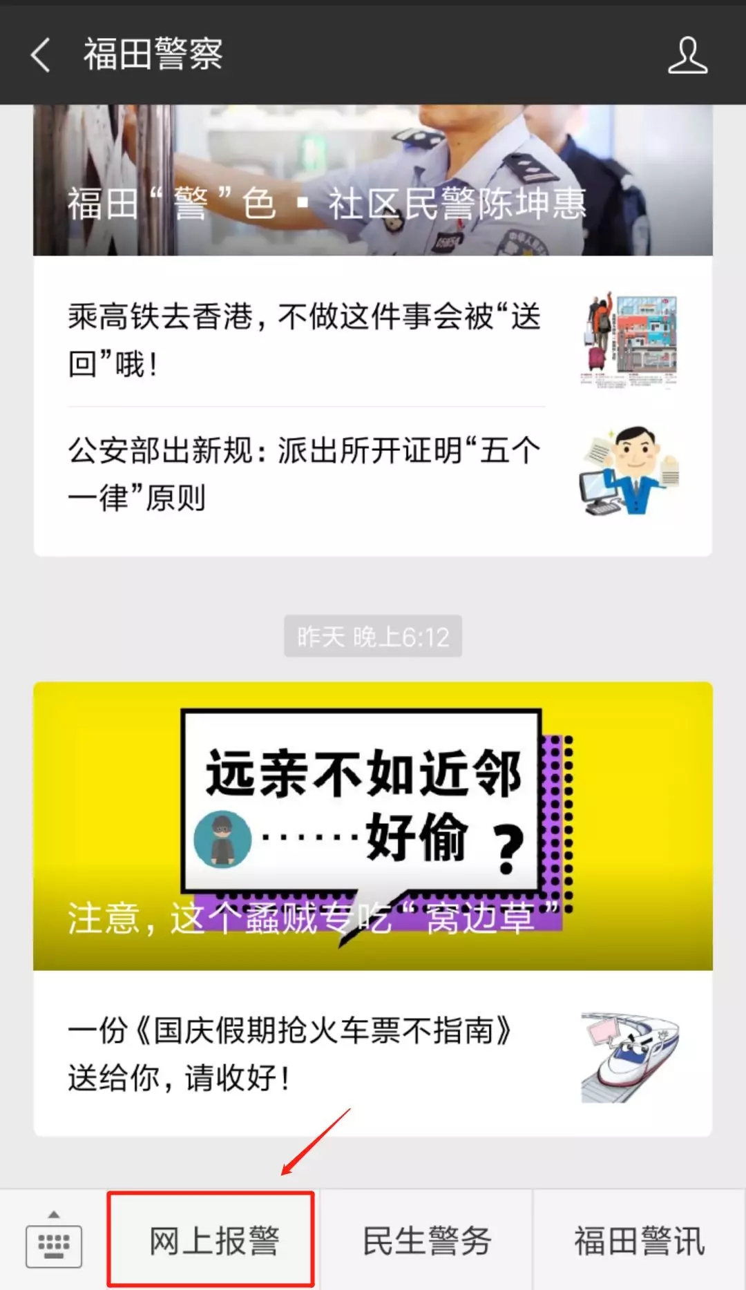 1、關(guān)注“福田警察”微信公眾號
