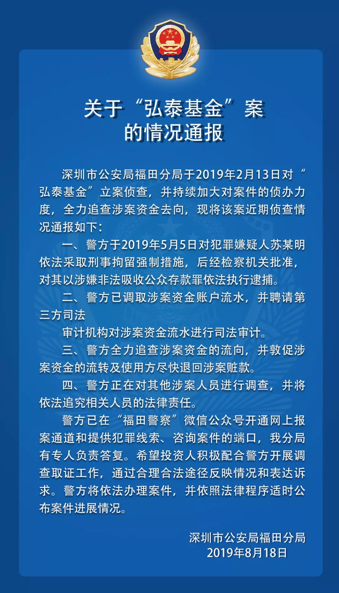 關(guān)于“弘泰基金”“綠化貸”平臺的案件情況通報