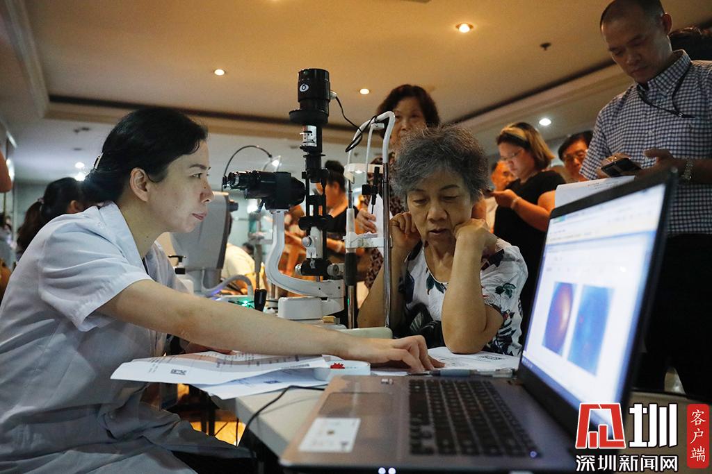 深圳市眼科醫(yī)院防盲科副主任曾琨正與來體檢的職工交流