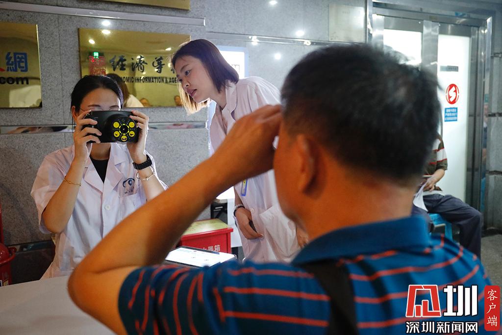 深圳市眼科醫(yī)院防盲科副主任曾琨正在給職工檢查