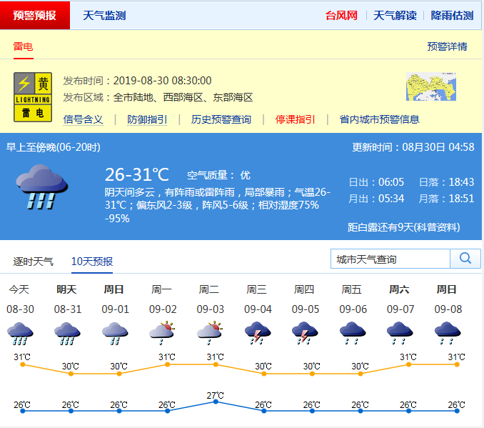 見圳客戶端·深圳新聞網2019年8月30日訊 今天多云間陰天,轉中到大雨,局部暴雨;26-31℃;偏東風2-3級,陣風6-7級;濕度75%-95%。臺風“楊柳”未來趨向越南,繼續(xù)遠離我市。預計31日至9月1日深圳多雷雨,局部暴雨,2-3日有短時陣雨。