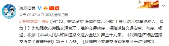 9月起,交警設(shè)立“深南嚴(yán)管示范路”!禁止這幾類車輛駛?cè)搿⑼7拧?/p>