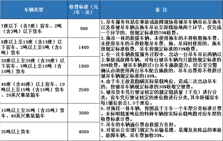 廣東省高速公路吊車服務(wù)收費(fèi)標(biāo)準(zhǔn)見(jiàn)下表: