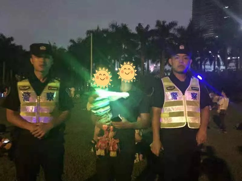 中秋夜21時(shí)許,深圳市公安局福田分局機(jī)動(dòng)訓(xùn)練大隊(duì)四中隊(duì)隊(duì)員黃俊豪、施裕楓在蓮花山巡邏時(shí),發(fā)現(xiàn)一名兩歲左右的幼童和父母走散了在哭著找媽媽,因小孩年齡太小無法獲取父母的聯(lián)系方式,兩名隊(duì)員便一直守護(hù)著孩子并在附近尋找其父母,直到找到其父親后送還小孩。