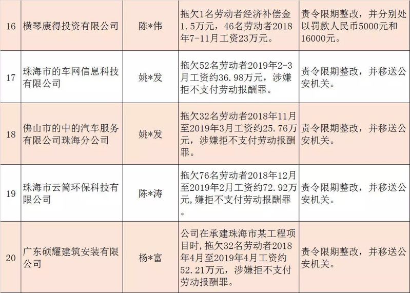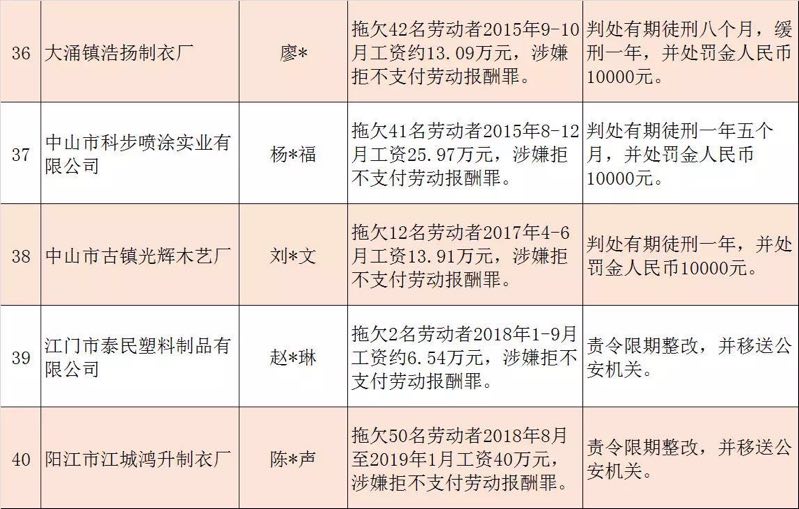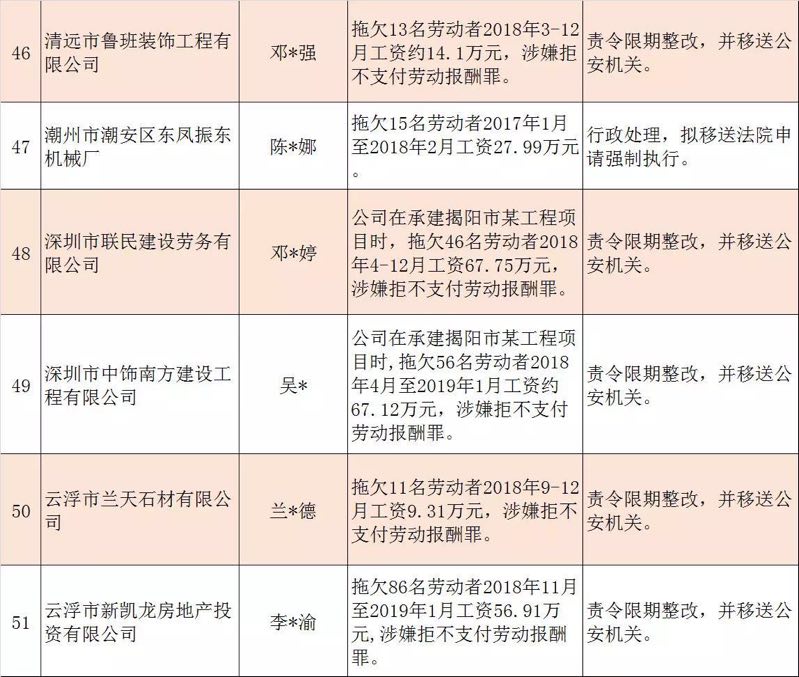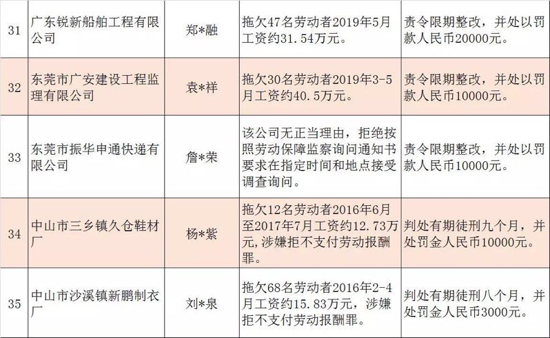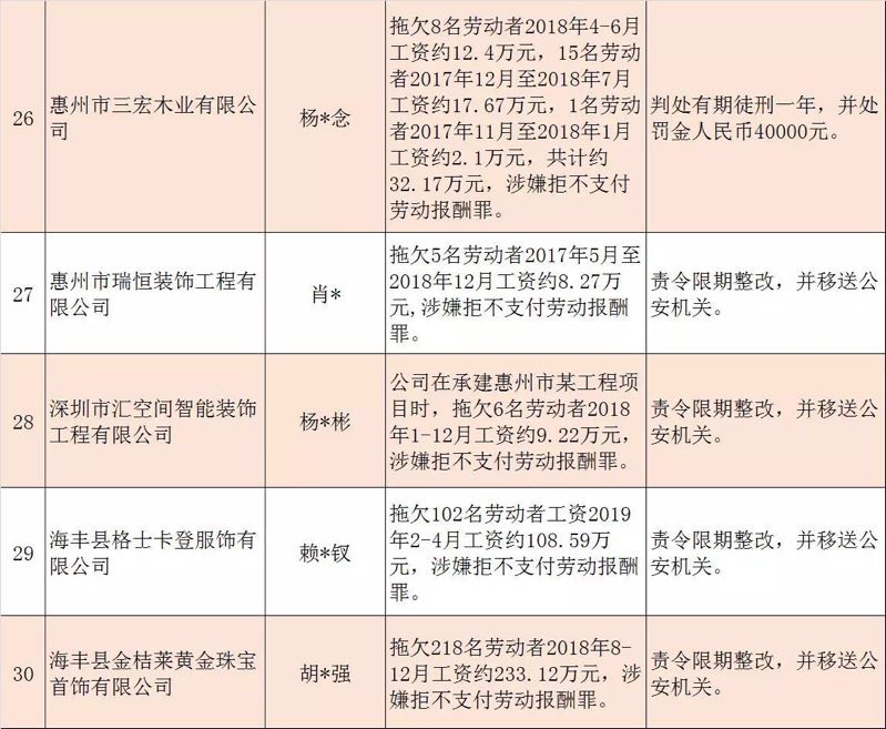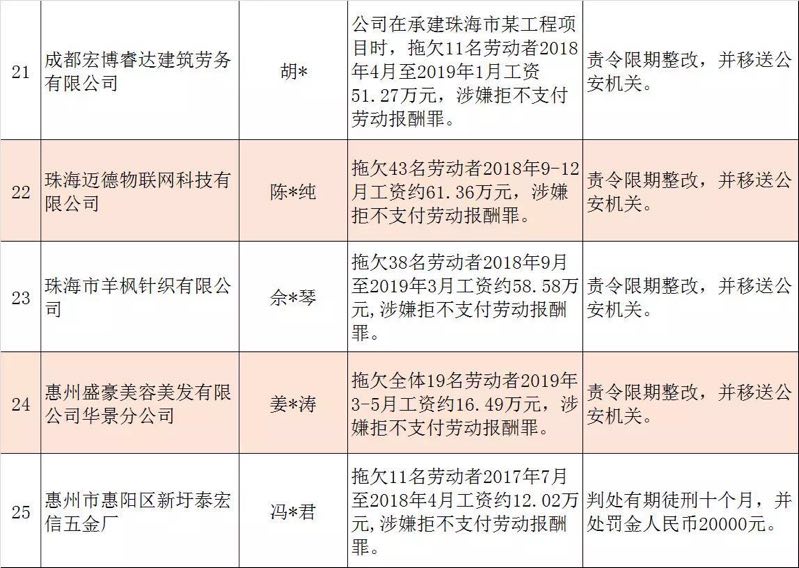 今年第二季度以來,廣東省人力資源社會保障行政部門繼續(xù)加大對欠薪等重大違法行為的打擊力度,各地特別是廣州、深圳、珠海、惠州、中山等地對欠薪逃匿、欠薪屢教不改、欠薪涉及人數(shù)和金額巨大等違法行為重拳出擊,依法處罰處理,對涉嫌犯罪的堅決移送司法機(jī)關(guān)繩之以法,切實維護(hù)勞動者的勞動報酬等權(quán)益。為加強(qiáng)對違法用人單位的社會監(jiān)督,強(qiáng)化誠信體系建設(shè),加大威懾力,日前省人社廳披露了2019年第三批重大違法案件,這51家黑心企業(yè)中就有10家是深圳“揪”出來的(如圖)。