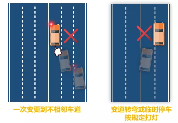 本次修訂對(duì)不按規(guī)定變道處罰500元。包括一次變更到不相鄰車(chē)道的、變道轉(zhuǎn)彎或者臨時(shí)停車(chē)不按規(guī)定打燈的,進(jìn)行處罰。