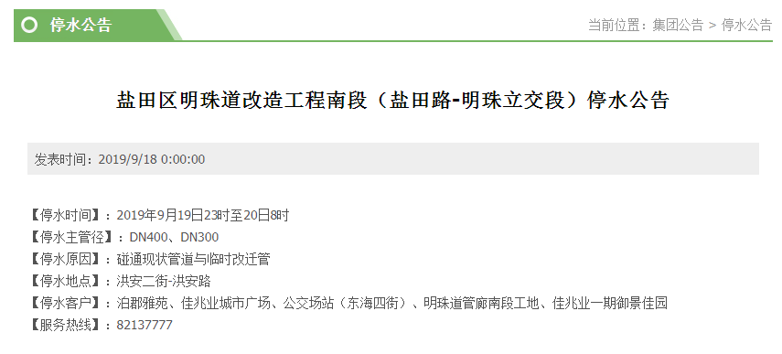 做好儲(chǔ)水準(zhǔn)備!19日至20日福田、鹽田這些地方將停水