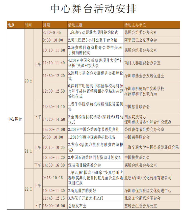 第七屆中國公益慈善項目交流展示會重要活動日程