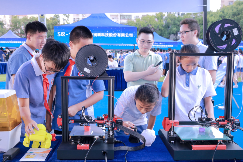 據(jù)了解,“禮贊共和國,智慧新生活”是今年全國科普日的主題。本次全國科普日寶安區(qū)活動分為航天科技裝備、太空知識長廊、氫能轉(zhuǎn)化實驗、 VRAR活動體驗、寶安區(qū)科普教育基地介紹等五個版塊,呈現(xiàn)出航天科技與太空知識相結(jié)合的科普盛宴。除此之外,深圳市洲明科技股份有限公司帶來了智慧路燈及節(jié)能系統(tǒng)的介紹;深圳市愛能特科技有限公司的3D打印讓學(xué)生們大開眼界,想像的物品只要設(shè)計出來就能打印;韓端科技 (深圳)有限公司帶來的機(jī)器人舞蹈揮舞著國旗震撼了全場……操場上、實驗室里處處散發(fā)出著科技的魅力。