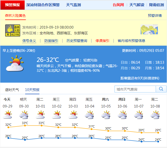 今天有霾盡量少戶外運(yùn)動(dòng)!國(guó)慶期間深圳天氣將持續(xù)藍(lán)天白云