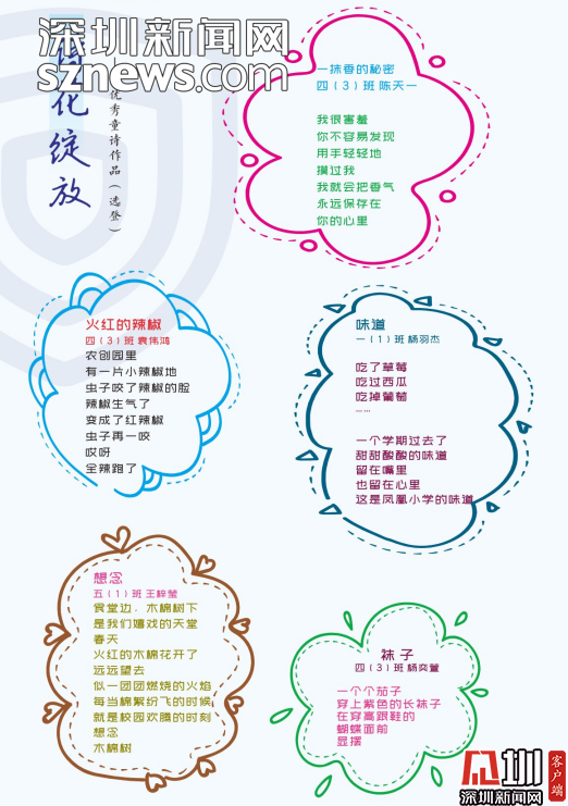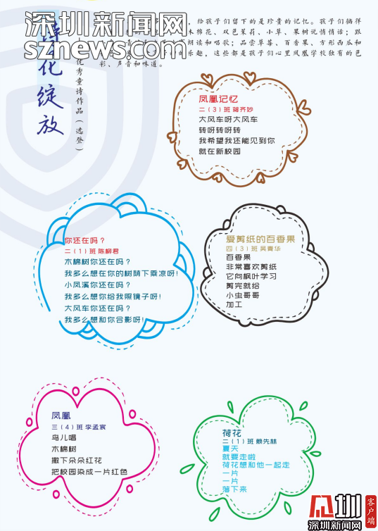 編委會的老師感慨,《童詩鳳凰》這本詩集是扎根于詩意校園的土壤結(jié)出的詩花。是鳳凰的孩子們在荷塘邊、在草莓地、在蘑菇亭、在好玩的地方用心聆聽大自然后,最真實最動人的表達(dá)。