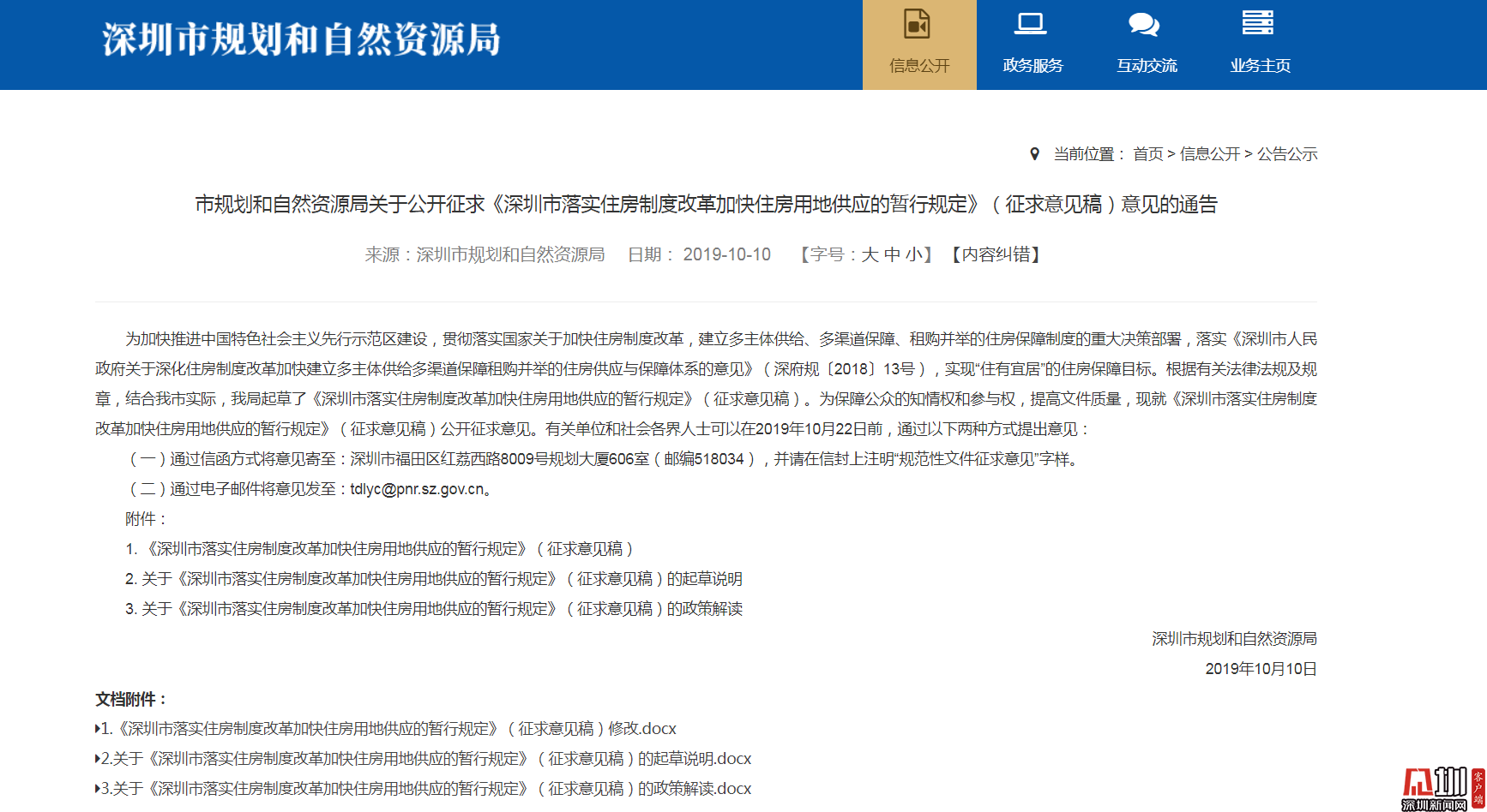 (二)通過電子郵件將意見發(fā)至:tdlyc@pnr.sz.gov.cn。