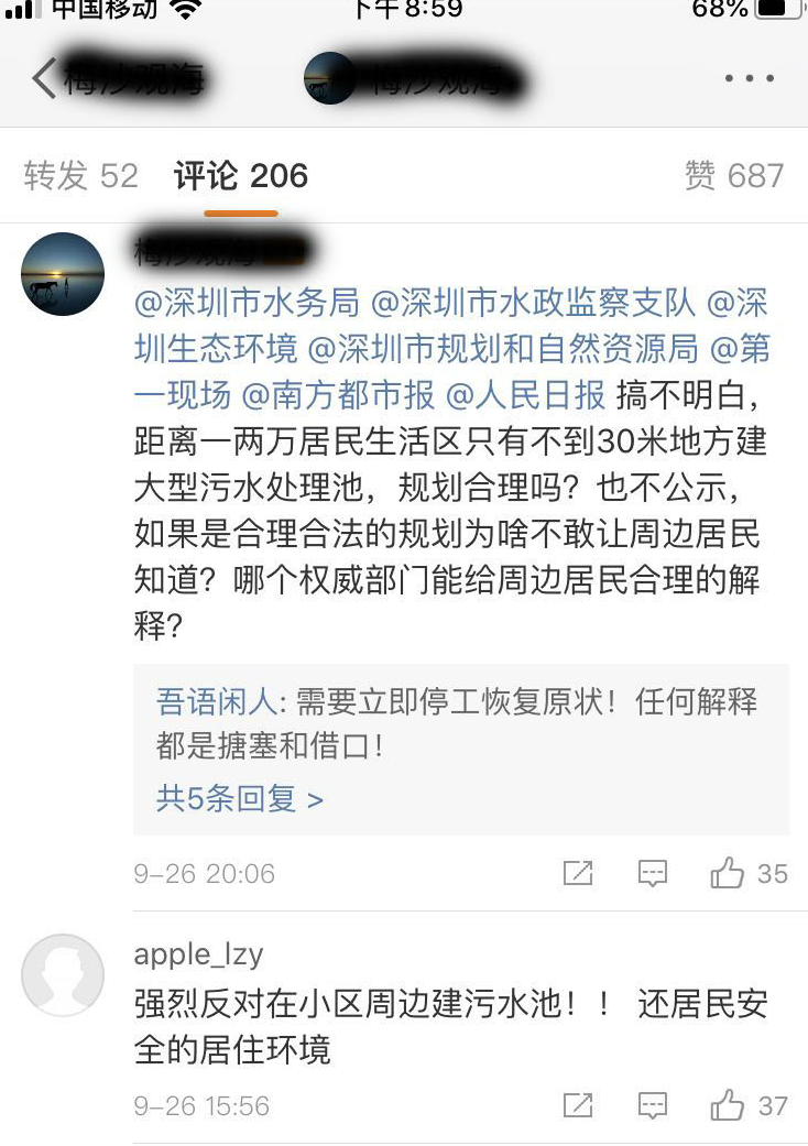 深圳特區(qū)報2019年10月11日訊 “南山寶珠花園、龍都名園附近距離小區(qū)不到30米建大型污水處理池,規(guī)劃部門怎么想的,不怕周圍居民不答應嗎?考慮過周邊居民的健康嗎?”近日,有市民在微博發(fā)文向媒體報料。