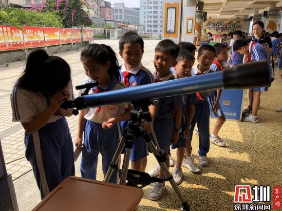 同學(xué)們爭相體驗天文望遠鏡