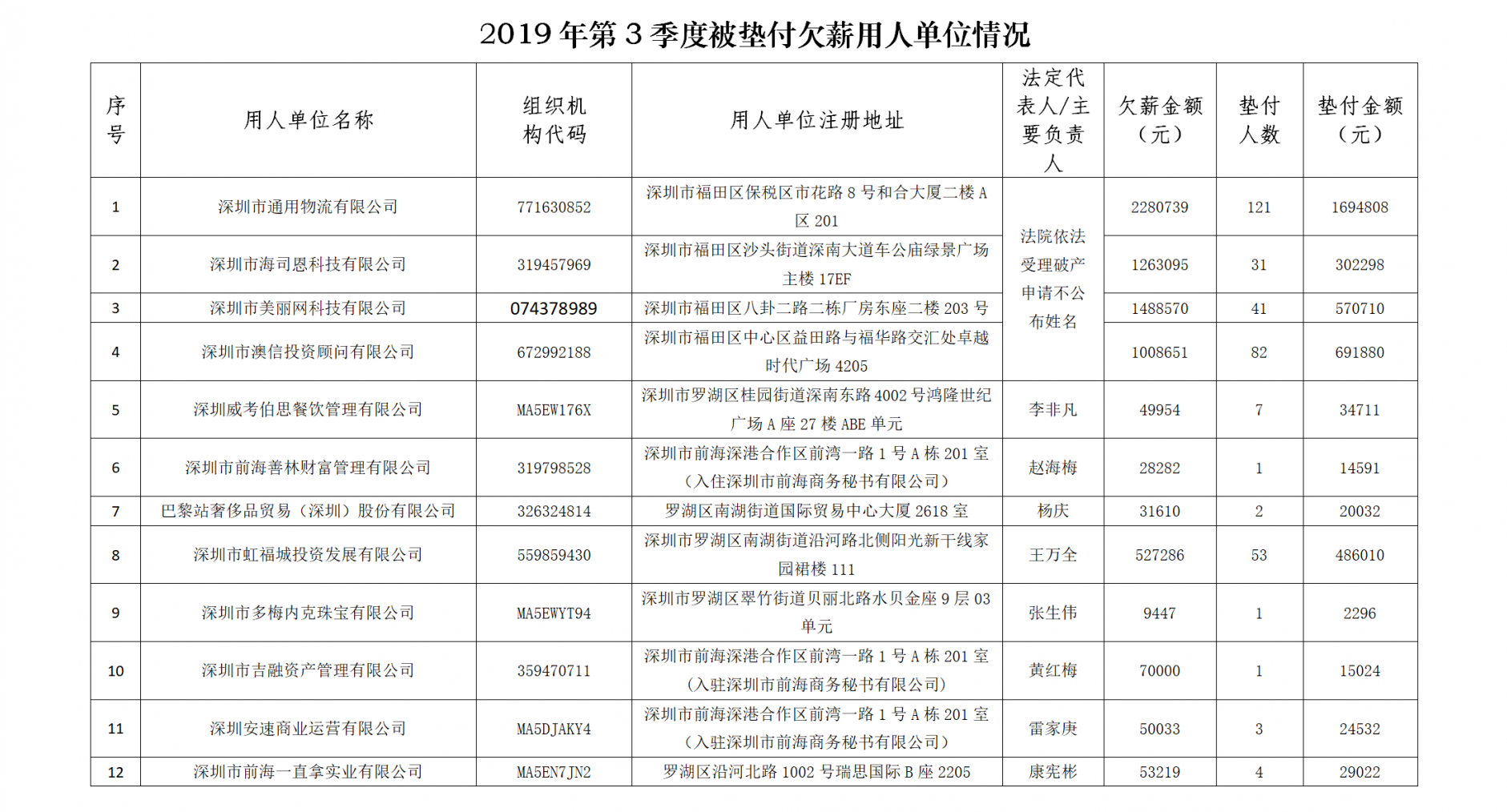 原標題:最高拖欠565萬余元!深圳曝光3季度33家被墊付欠薪企業(yè)