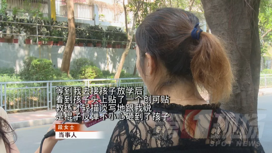 監(jiān)控畫面中被教練用棍棒砸中的孩子,正是段女士7歲的兒子小劉。段女士說,孩子在課堂上受傷后,教練和培訓(xùn)機構(gòu)并沒有第一時間通知她,甚至在她來接孩子時,也沒有主動告知實情。