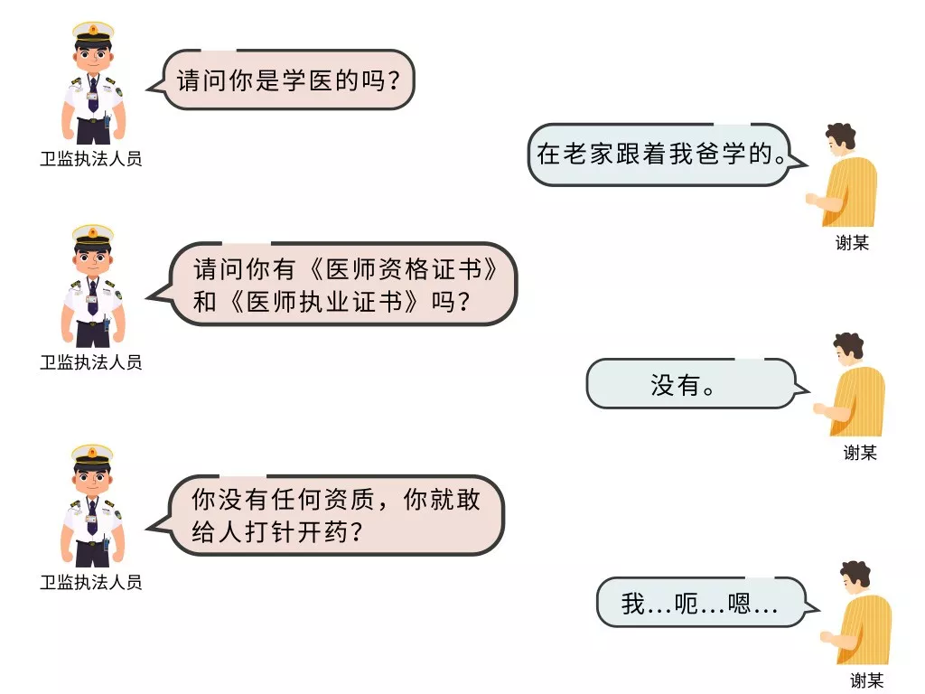 謝某表示自己在老家跟父親學(xué)醫(yī),