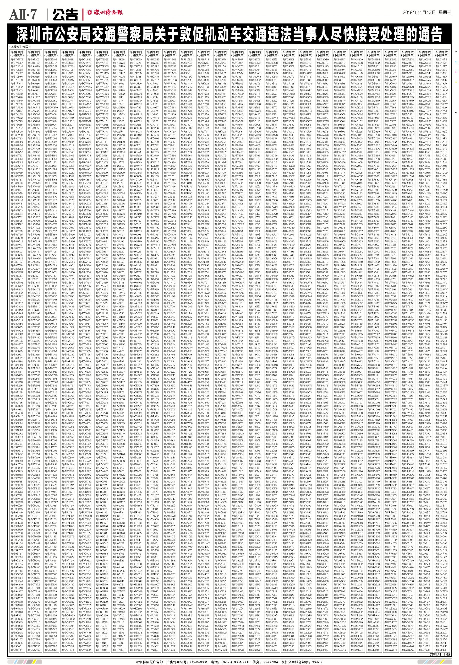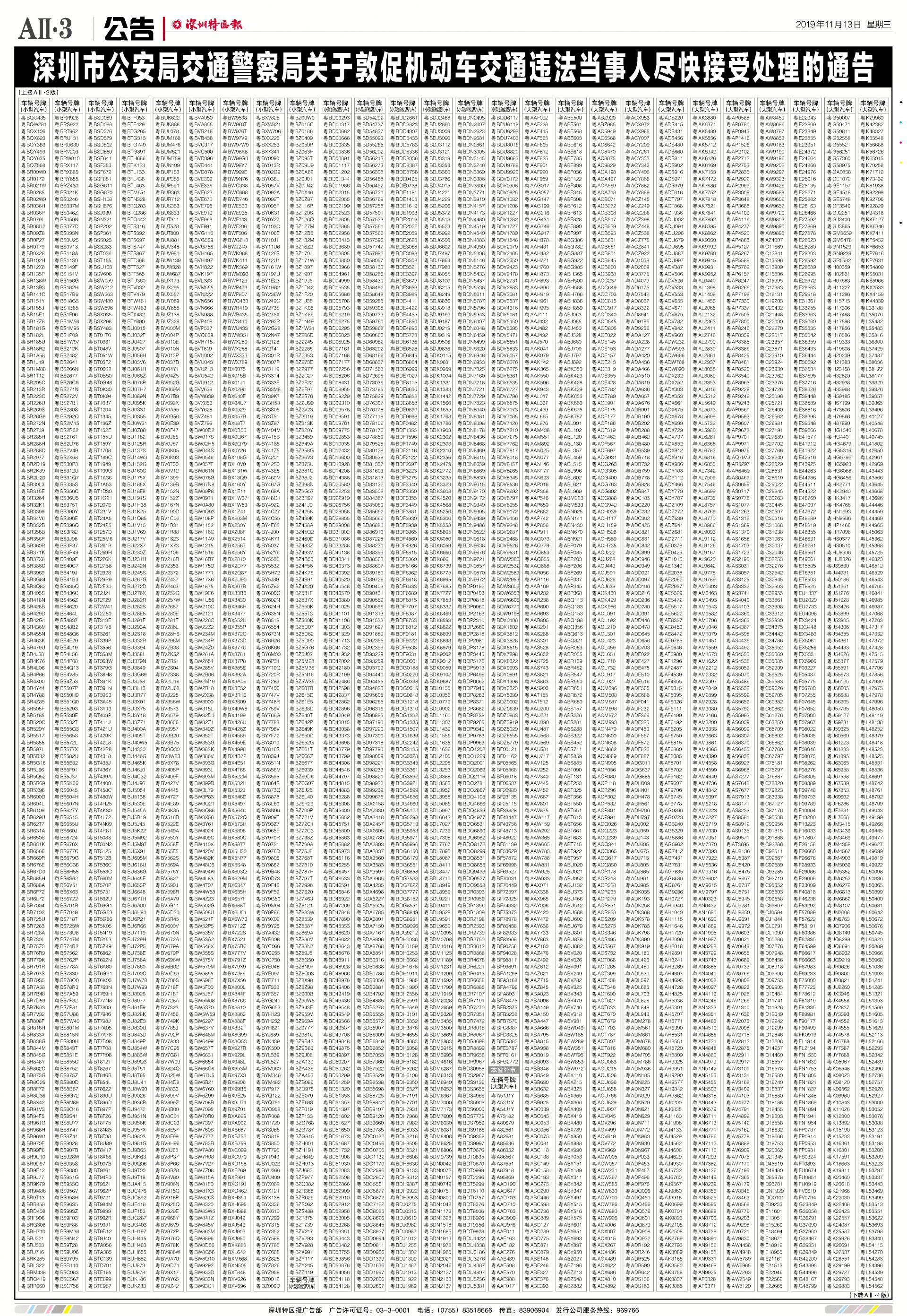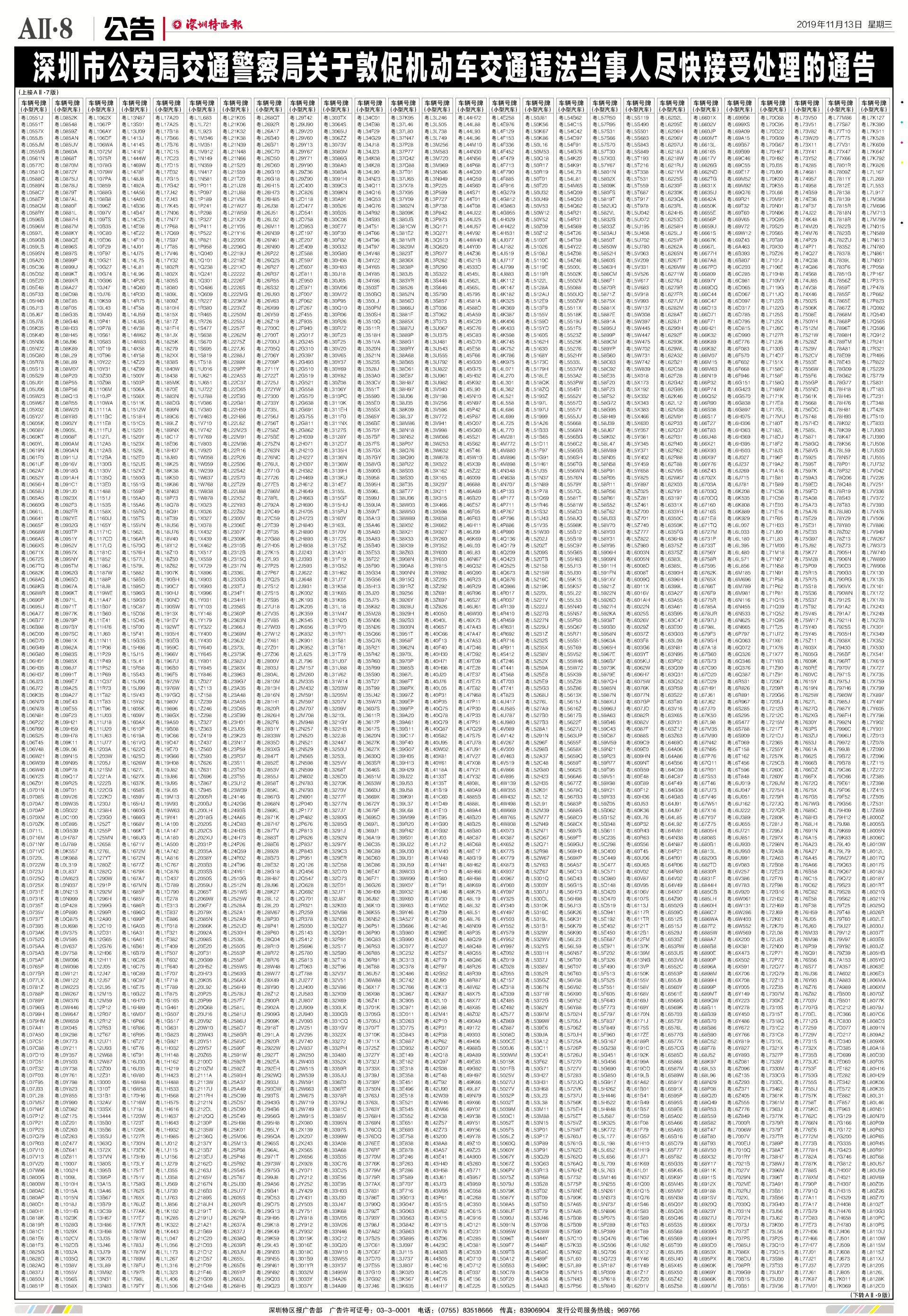 今年7月至10月初,全市機(jī)動車被“電子警察”抓拍交通違法行為1342781宗,深圳交警通過多種方式進(jìn)行交通違法行為告知,但截止至目前仍有部分機(jī)動車的非現(xiàn)場交通違法未及時處理。