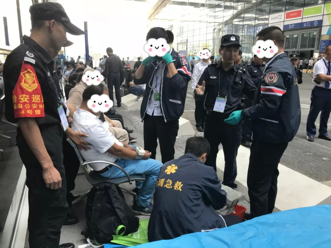 機(jī)動訓(xùn)練大隊三中隊執(zhí)勤分隊長郭正在執(zhí)勤時,發(fā)現(xiàn)一名參展商頭暈不適,第一時間通知場館醫(yī)療人員前往救助,隨后將該名參展商送往醫(yī)院,經(jīng)醫(yī)生救治后該名參展商已無大礙。