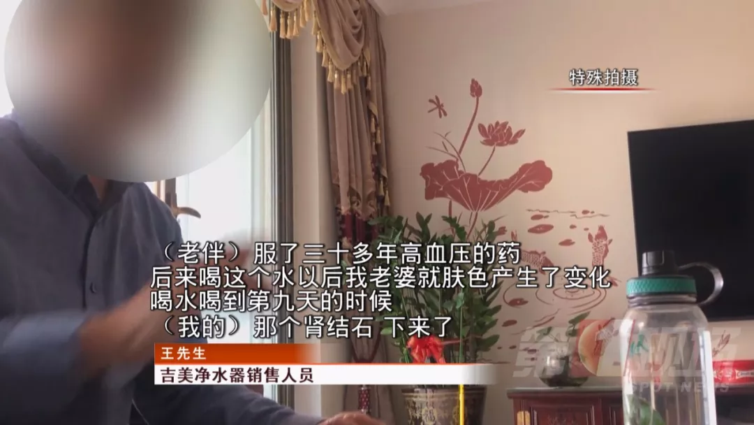 在描述完“療效”后,銷售員王先生開始介紹水的價(jià)格了。他說,凈水器產(chǎn)品是通過會員制來推廣的,五年前,他交了一萬五千塊成為了吉美公司會員,并從湖南帶回了四套機(jī)器。