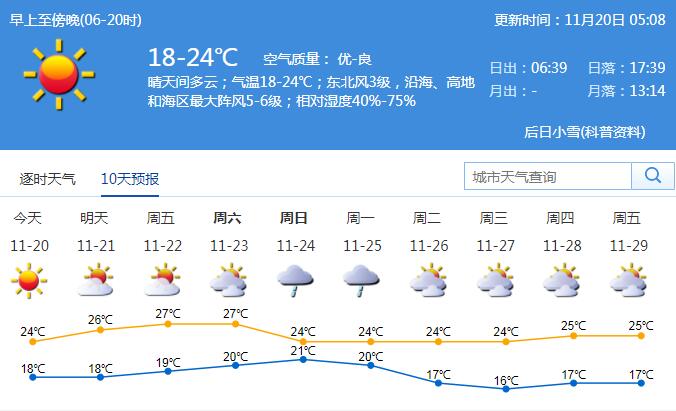 很多市民關(guān)心,深圳是不是就此入秋了?根據(jù)氣象標準,五天滑動平均氣溫≤22℃,且日平均氣溫≤22℃那天起便是入秋了。深圳平均入秋時間11月3日,2018 年入秋時間為11月22日。由此來看,能否判斷深圳是否已經(jīng)入秋,還需要再觀察一下。