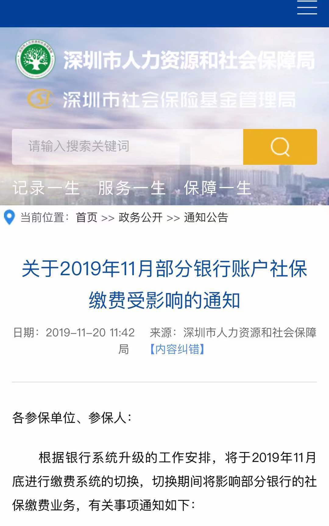 原標(biāo)題:部分業(yè)務(wù)將受影響!深圳市社保局11月底進(jìn)行繳費(fèi)系統(tǒng)切換