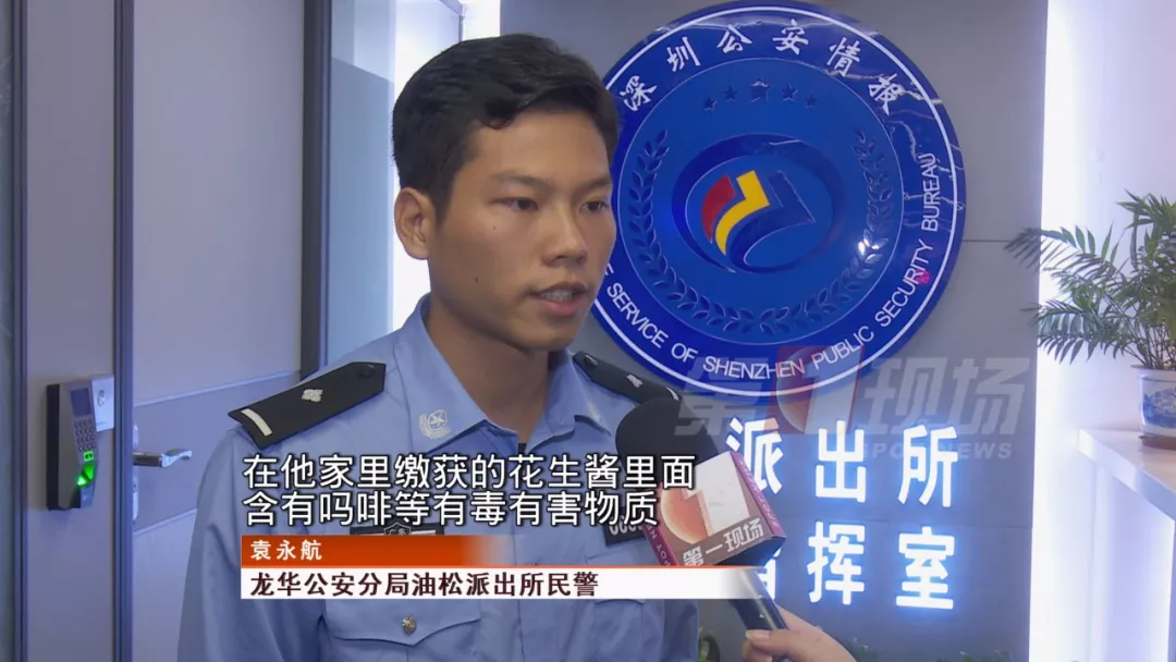 民警把從他家中繳獲的花生醬送到相關(guān)部門檢測,發(fā)現(xiàn)里面含有嗎啡等有毒有害物質(zhì)。