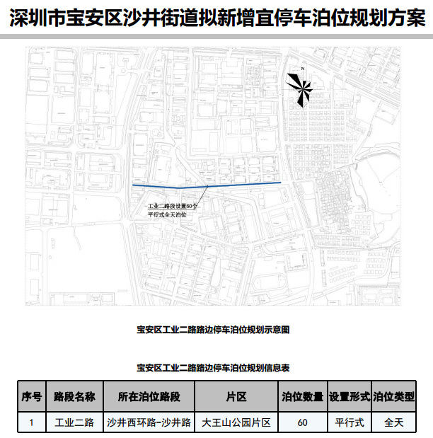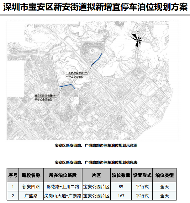 其中,在寶安區(qū)3條道路新增316個宜停車泊位、龍崗區(qū)23條道路新增890個宜停車泊位、龍華區(qū)14條道路新增702個宜停車泊位、光明區(qū)9條道路新增305個宜停車泊位、大鵬新區(qū)5條道路新增157個宜停車泊位。具體規(guī)劃方案如下: