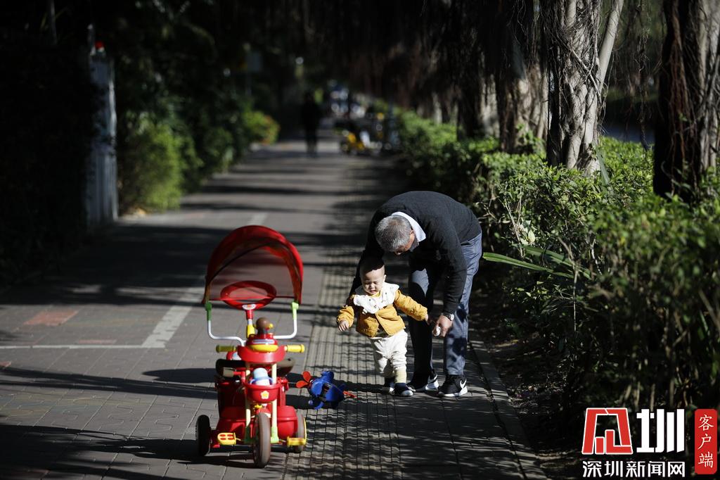 深圳南山區(qū),出行的小朋友穿上冬裝御寒。
