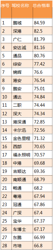 深圳11月駕校考試質(zhì)量排行榜出爐!哪所駕校排名第一?
