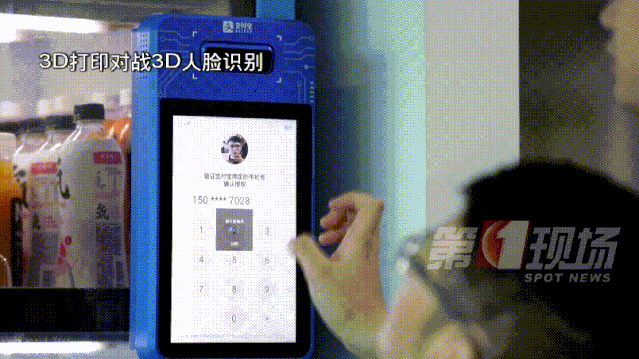 我們把頭模放在了自動售賣機(jī)的識別系統(tǒng)前,支付系統(tǒng)并沒有直接通過,而是發(fā)起了二次驗證,輸入手機(jī)后,系統(tǒng)最終顯示支付失敗。