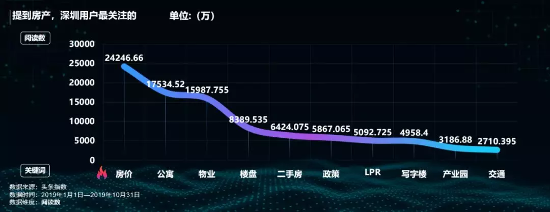 數(shù)據(jù)顯示,今年提到房產(chǎn),深圳網(wǎng)友最關(guān)注的是“房?jī)r(jià)”、“公寓”、“物業(yè)”這三大關(guān)鍵詞。