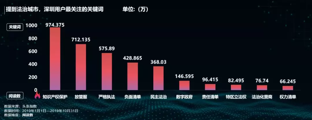 深圳的法治建設(shè)領(lǐng)跑全國(guó),今年國(guó)家支持深圳率先營(yíng)造彰顯公平正義的民主法治環(huán)境,打造法治城市示范,進(jìn)一步引起全市人民關(guān)注。尤其是在知識(shí)產(chǎn)權(quán)的保護(hù)方面,被稱為“最嚴(yán)知識(shí)產(chǎn)權(quán)保護(hù)條例”的《深圳經(jīng)濟(jì)特區(qū)知識(shí)產(chǎn)權(quán)保護(hù)條例》的正式實(shí)施,以及國(guó)家對(duì)深圳探索知識(shí)產(chǎn)權(quán)證券化的支持,讓“知識(shí)產(chǎn)權(quán)保護(hù)”一詞成為年度熱詞。今年深圳進(jìn)一步優(yōu)化政府管理和服務(wù),嚴(yán)格執(zhí)法,打造法治化營(yíng)商環(huán)境,“放管服“、“負(fù)面清單”等政策引起網(wǎng)友關(guān)注。