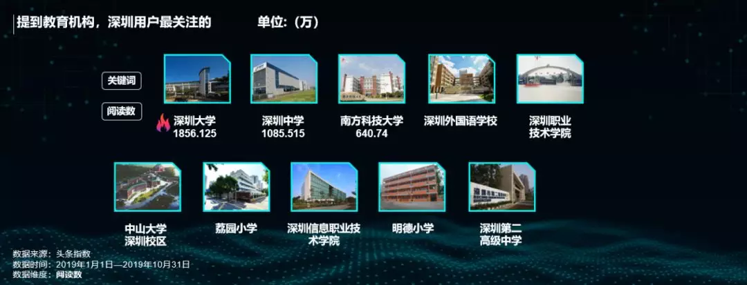 數(shù)據(jù)顯示,深圳大學(xué)、深圳中學(xué)和南方科技大學(xué)這三所教育機(jī)構(gòu)最受深圳網(wǎng)友關(guān)注。今年深圳在補(bǔ)齊教育短板上的力度繼續(xù)加大,尤其是在《意見(jiàn)》支持深圳在教育體制改革方面先行先試,高標(biāo)準(zhǔn)辦好學(xué)前教育,擴(kuò)大中小學(xué)教育規(guī)模,高質(zhì)量普及高中階段教育,充分落實(shí)高等學(xué)校辦學(xué)自主權(quán),加快創(chuàng)建一流大學(xué)和一流學(xué)科,打造現(xiàn)代職業(yè)教育體系后,深圳教育的進(jìn)步發(fā)展,未來(lái)可期。