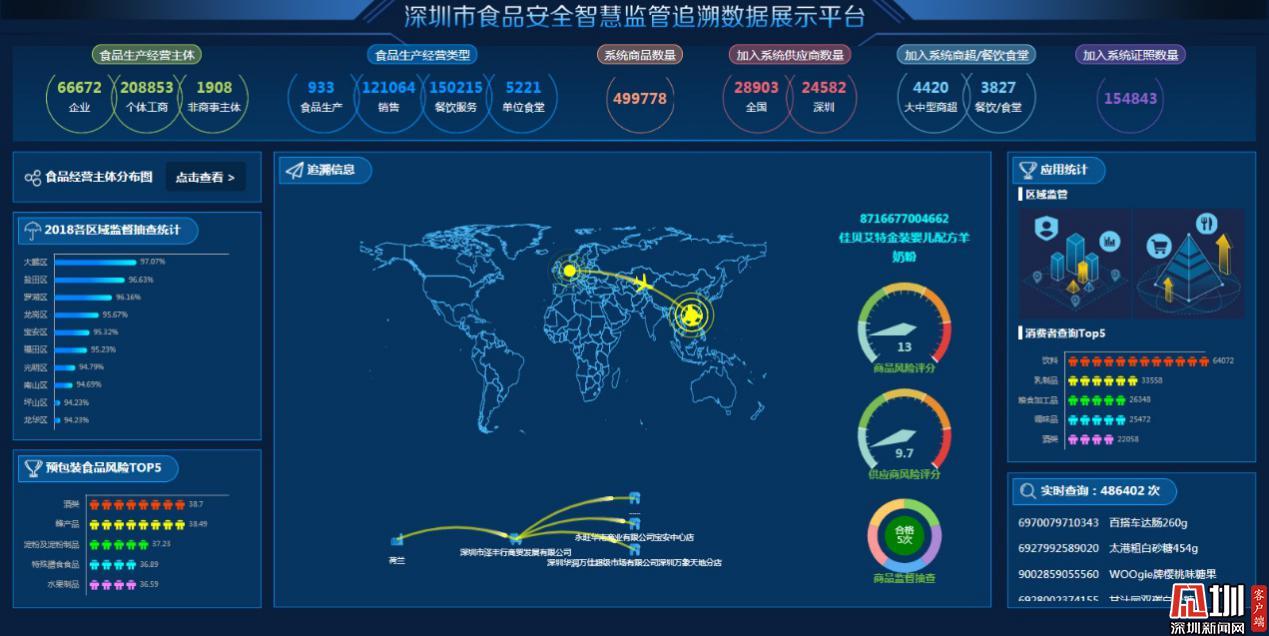 深圳市食品安全智慧監(jiān)管追溯數(shù)據(jù)展示平臺首頁